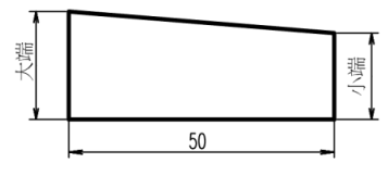 22. 工件如圖所示,斜度為 1/10,長度為 50mm 大端尺寸為 25mm 則小端尺寸為(A)20mm(B)15mm(C)10mm(D)2mm。