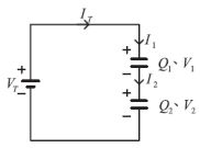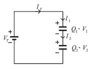 50.如圖之電容器並聯電路,若VT = 10V,C1 = 2μF,C2 = 3μF。求Q1?(A)20uC (B)30uC(C)50uC(D)60uC