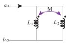 10. 如下圖所示電感電路,若 L1=4 亨利 (H)、L2=4 亨利、M=2 亨利,則總電 感量 Lab 為多少亨利?(初等考 112) (A) 2 (B) 3 (C) 6 (D) 10