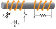13. 如下圖所示,當開關 S 切入之瞬間,A 點電壓為、B 點電壓為,則 與的關係為何?(鐵路特考 112) (A)(B)(C)(D)