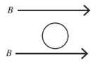 15. 如下圖所示,當在一均勻磁場 B 中的圓形導體向右移動,此導體內感應電流的方向為何?(鐵路特考 112) (A) 垂直流入紙張 (B) 垂直流出紙張(C) 向右 (D) 無感應電流