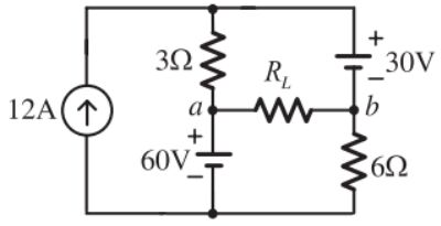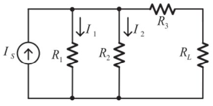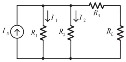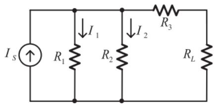 6.如圖所示直流電路,IS = 60A,R1 = 6Ω,R2 = 12Ω,R3 = 4Ω,在不同負載電阻情況,計算流經電阻的電流,並設計負載電阻 RL 以符合下列情況。若負載電阻 RL為多少 Ω?可得最大功率(統測 112)(A)6Ω(B)8Ω(C)10Ω(D)12Ω
