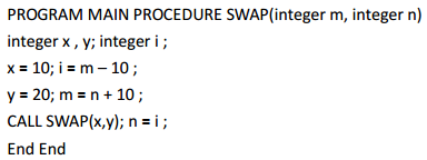 17.有一主程式 MAIN 呼叫副程式 SWAP 如下,假設主程式呼叫副程式的方式為傳值呼叫(Call-by-Value),請問執 行完副程式後,x 與 y 之值為何?