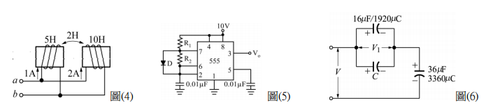 6. 如圖(5)所示之 IC555 電路,D 為理想二極體,在電路能正常工作下,若 R