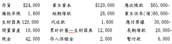 【已刪除】3.佑心商店101年底調整後相關帳戶之餘額如下,試編製帳戶式資產負債表 (本期淨利或淨損結轉業主往來)。 (@橫行1分,共20分)