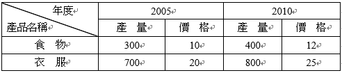 【已刪除】7.假設尼泊爾只生產食物與衣服兩種財貨,其2005年及2010年之產量與價格資料如下表: