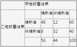 根據下表資料,請問百分比一致性係數計算結果為何?