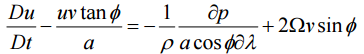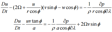 【已刪除】二、東西方向單位質量的動量方程式為: