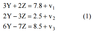 為殘差(剩餘誤差)項。試以最小二乘法平差 原理,求Y、Z的估值及其中誤差。(25 分)