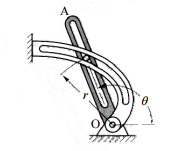 【已刪除】二、下圖中槽臂 OA 轉動時帶動銷子沿著一固定的曲線導槽運動,此曲線導槽為一螺線 (spiral),其方程式 r = Kθ。當θ = π / 3 時,槽臂由靜止開始以α 之等角加速度轉動, 試求θ =3π /4 時銷子的加速度。(20 分)