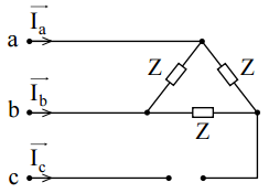 【已刪除】四、有壹三相△接之負載(如下圖所示),其 c 相線路發生開路故障,已知此時三相線電流