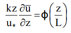 【已刪除】七、在表面層(surface layer),依相似理論(similarity theory),水平的平均風 u 具有 下列無因次關係