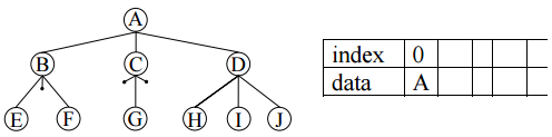 【已刪除】六、已知二元樹可以用一維陣列來儲存。請依此概念設計一方法,儲存以下三元樹於如 下之一維陣列中。(10 分)