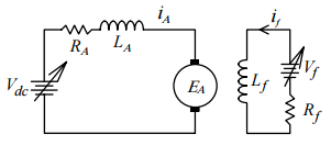 【已刪除】三、一它激式(Separately Excited)直流機,可分別調整電樞電壓和磁場電流控制轉速, 等效電路如下圖。舉一例說明,如何使直流機操作於能量反饋剎車(Regenerative Braking),並在等效電路圖上標明電樞電流(i