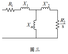 【已刪除】六、有一台 220V、60Hz、四極、Y 接三相感應電動機,其由電源端看到的等效電路如圖三 所示,其中