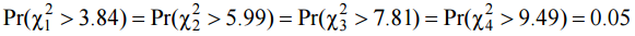 是自由度為 d 之卡方分布的隨機變數,可用下列之一等式完成檢定: