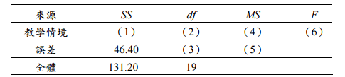 【已刪除】 ⑸分析部份結果如下表,請問表中空格數據為何?(6 分)