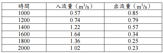 【已刪除】一、有一水庫之入流量及出流量分別如下表所示: