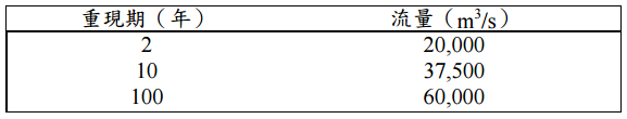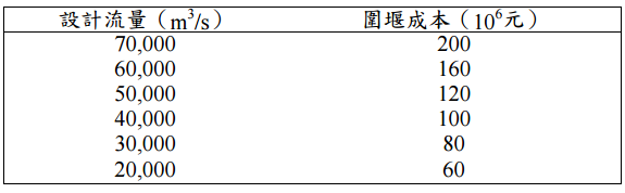 試以經濟效益分析圍堰採用之最佳設計流量。(25 分)
