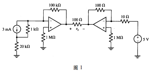 【已刪除】一、如圖 1 所示,設運算放大器為理想放大器,試求v
