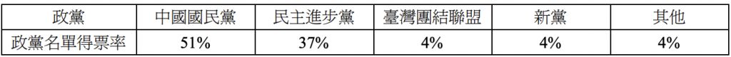(A)中國國民黨可獲得 20 席不分區立法委員 (B)民主進步黨可獲得 13 席不分區立法委員 (C)臺灣團結聯盟可獲得 1 席不分區立法委員 (D)新黨可獲得 1 席不分區立法委員