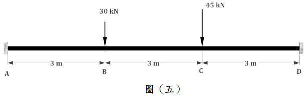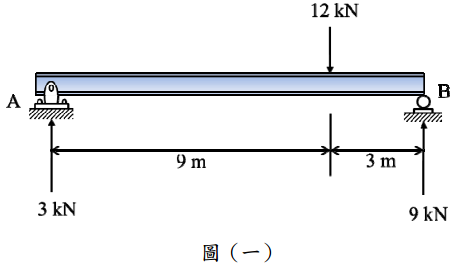 【已刪除】一、請以共軛梁法求圖(一)之梁的最大變位。其中梁之E=200 GPa,I=1×10