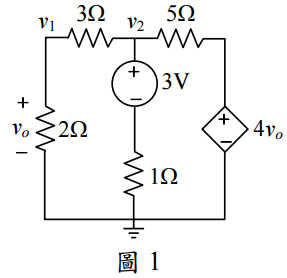 【已刪除】一、用節點分析法,求圖 1 中之v1及v2。(20 分)