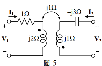 【已刪除】六、圖 5 為一含互感之雙埠電路,求 z 參數。(15 分)
