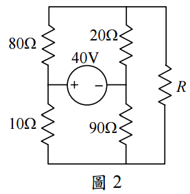 【已刪除】二、為使圖 2 中之 R 值吸收最大功率,求 R 值,並求 R 值吸收之最大功率。(15 分)