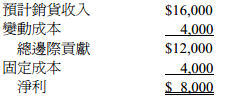 (一)在利潤提升之方案採用前,為達全年利潤目標$270,000,第四季應有之銷售數量 為何?(5 分)