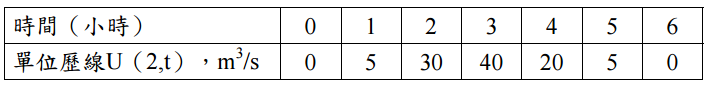 【已刪除】三、某集水區,其延時 2 小時,10 mm 有效降雨之單位歷線可寫如下表所示: