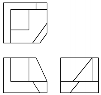 【已刪除】四、請將下列之三視圖繪製成立體圖(第三角法):(10 分)