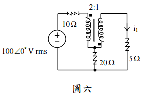 【已刪除】七、圖六所示為一個理想變壓器,試求電流i