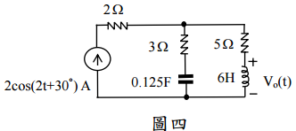 【已刪除】四、如圖四所示之電路圖,輸入為弦波,當電路處於穩態時,試求V