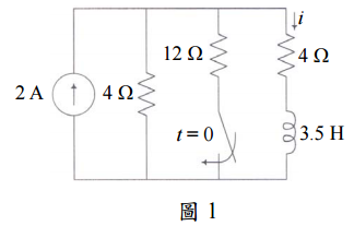 【已刪除】一、求圖 1 中之電感電流 i,電流 i 要包含 t < 0 及 t ≥ 0。(20 分)