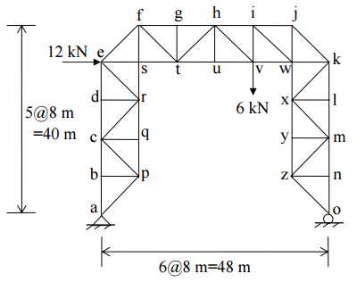 【已刪除】二、分析所示桁架結構各支承反力,與桿件 jk、wk 之受力。各桿件之 E、A 均相同。 (25 分)