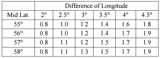 :141°30.0’W,以船上方探(DF)測得此RC相對方位為 020°,當時 DF校準曲線誤差為+4.5°,求在麥氏海圖作業之真方位值。(15 分)(參考無線電 方位轉換表,如下表)