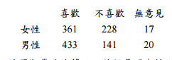 【已刪除】三、某娛樂公司欲了解電視節目型態與觀眾性別是否相關做了一項調查,抽訪了 1200 名 成年觀眾,並詢問他們對政論節目的喜好,結果如下: