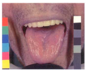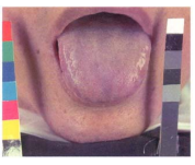 40 根據《金匱要略》,若患者腹部脹滿,下列何種舌診圖最適合用攻下法? (A)