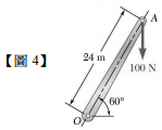 4.垂直力 100 N 作用於桿件的端點 A 處,如【圖 4】所示。試問 100 N 對 O 點的力矩(moment)? (註: sin60° = 0.866 ,cos60° = 0.5 )