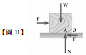 11.如【圖 11】表示某物體重量 W,受水平外力 P 及反應力的關係圖。物體與接觸面間的靜摩擦係數表示為 μ