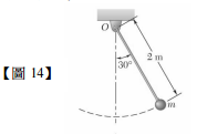 14.如【圖 14】所示的擺錘,質量為 m,請問切線方向的加速度為何?(註:sin 30 = 0.5 o , cos30 = 0.866 o )