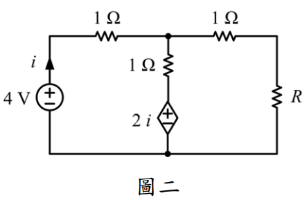 【已刪除】二、如圖二所示之電路,求電阻 R 可獲得之最大功率。(20 分)