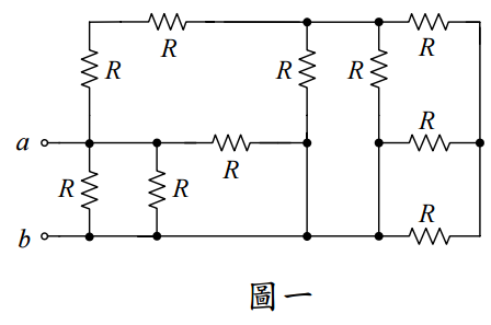 【已刪除】一、如圖一所示之電路,求 ab 兩端的等效電阻。(20 分)
