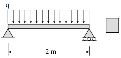 【已刪除】四、有一簡支梁受均佈荷重如下圖所示,梁之斷面為矩型,其寬度為 200 mm,高度為 300 mm,均佈荷重q = 20 kN/m,計算其所受最大彎曲應力σ