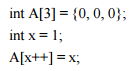 (A)執行後,A[1] = 1 (B)執行後,A[1] = 2 (C)執行後,A[2] = 1 (D)執行後,A[2] = 2