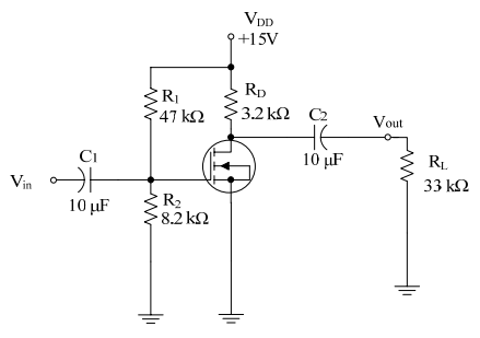 ⑵導出電壓增益之公式並求其數值。(14 分)