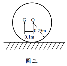 【已刪除】四、圖三所示為一偏心輪,其質量 20kg,質心為G,軸心為O,迴轉半徑(radius of gyration)為k