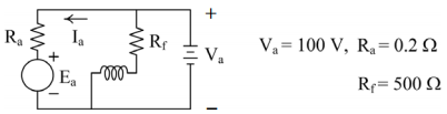 【已刪除】二、將一台如下圖所示之直流並激式電動機操作於無載運轉時,其轉速為 1000 轉/分 (rpm)而電樞電流I