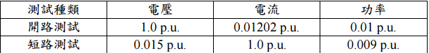 【已刪除】一、一個額定為 2 kVA 之單相變壓器的一、二次側額定電壓比值為 100 V:500 V,若將其 分別進行開路及短路測試後,以此變壓器額定為基準所得到的量測數據標么值如下: